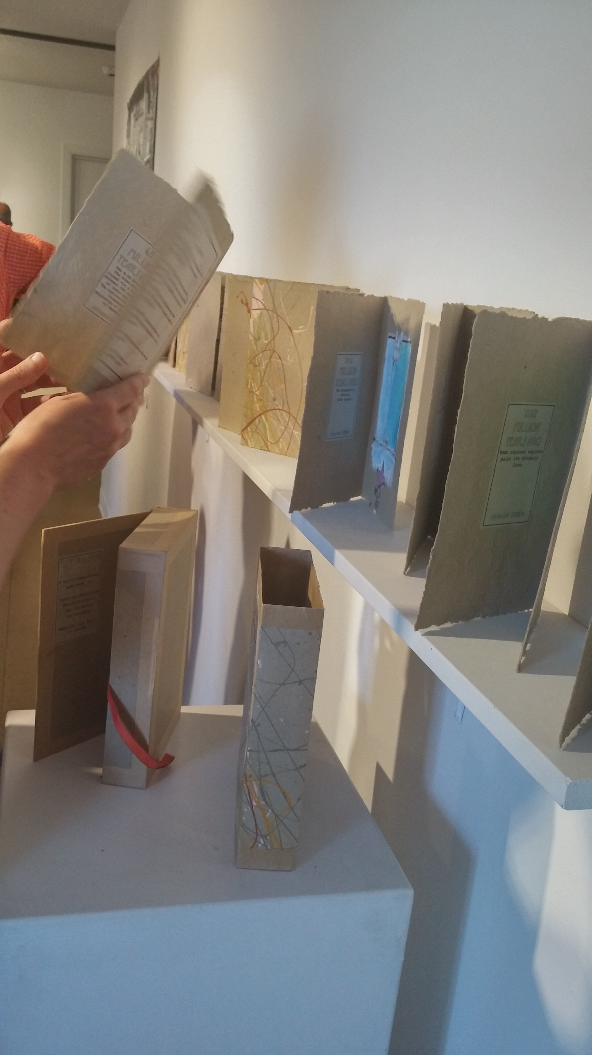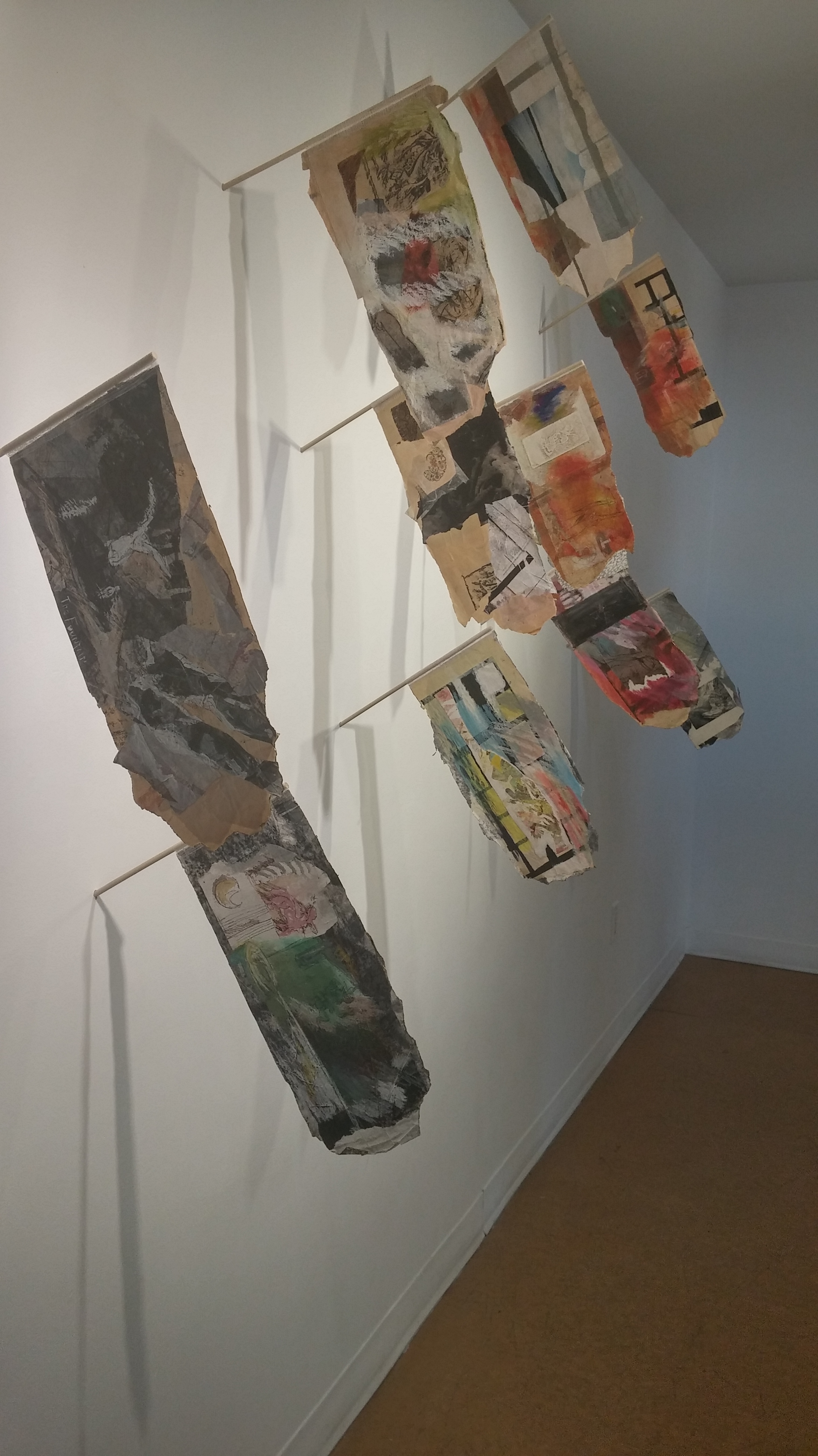 The drawings and etchings are balanced with cheeky, abstract works that play with space and forms on the surface while presenting unexpected treatment of the wall itself. These walls don’t just receive art, they are active participants and collaborators that provide a play space for light, shadow and textures. We are liberated by the artist to read, explore and have personal interaction with the works, breaking all the ‘no touchy’ art taboos.