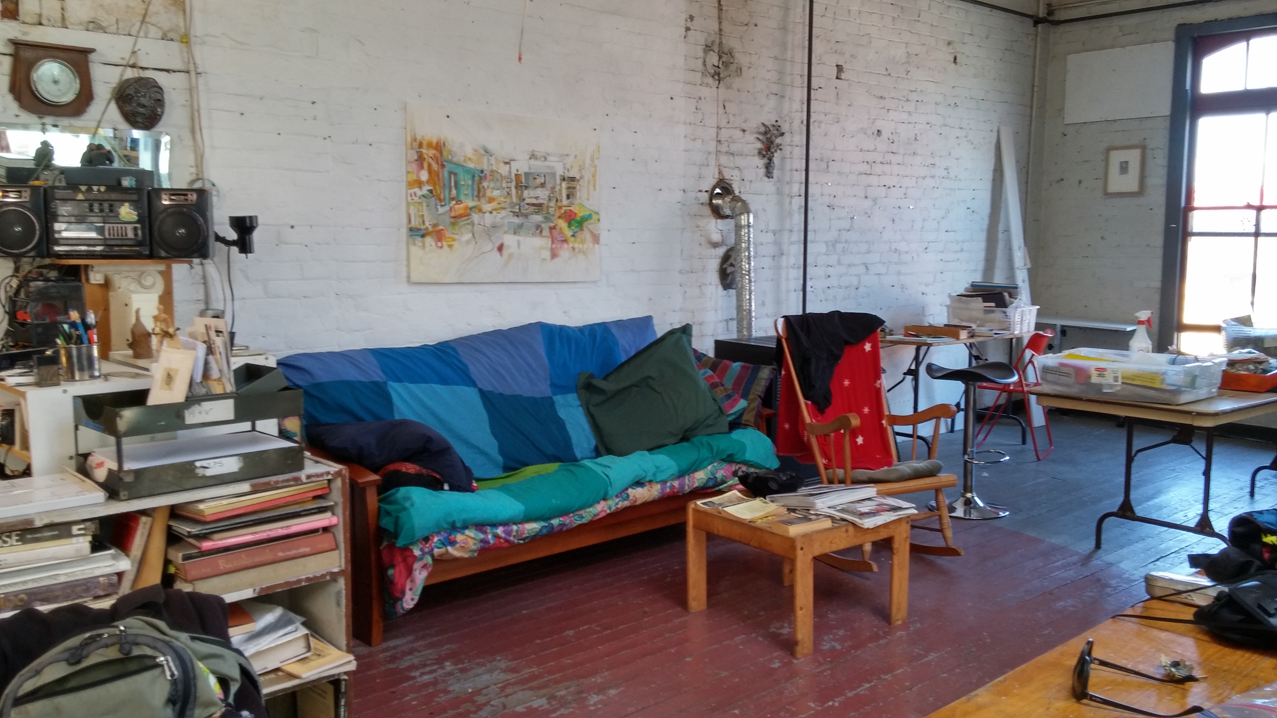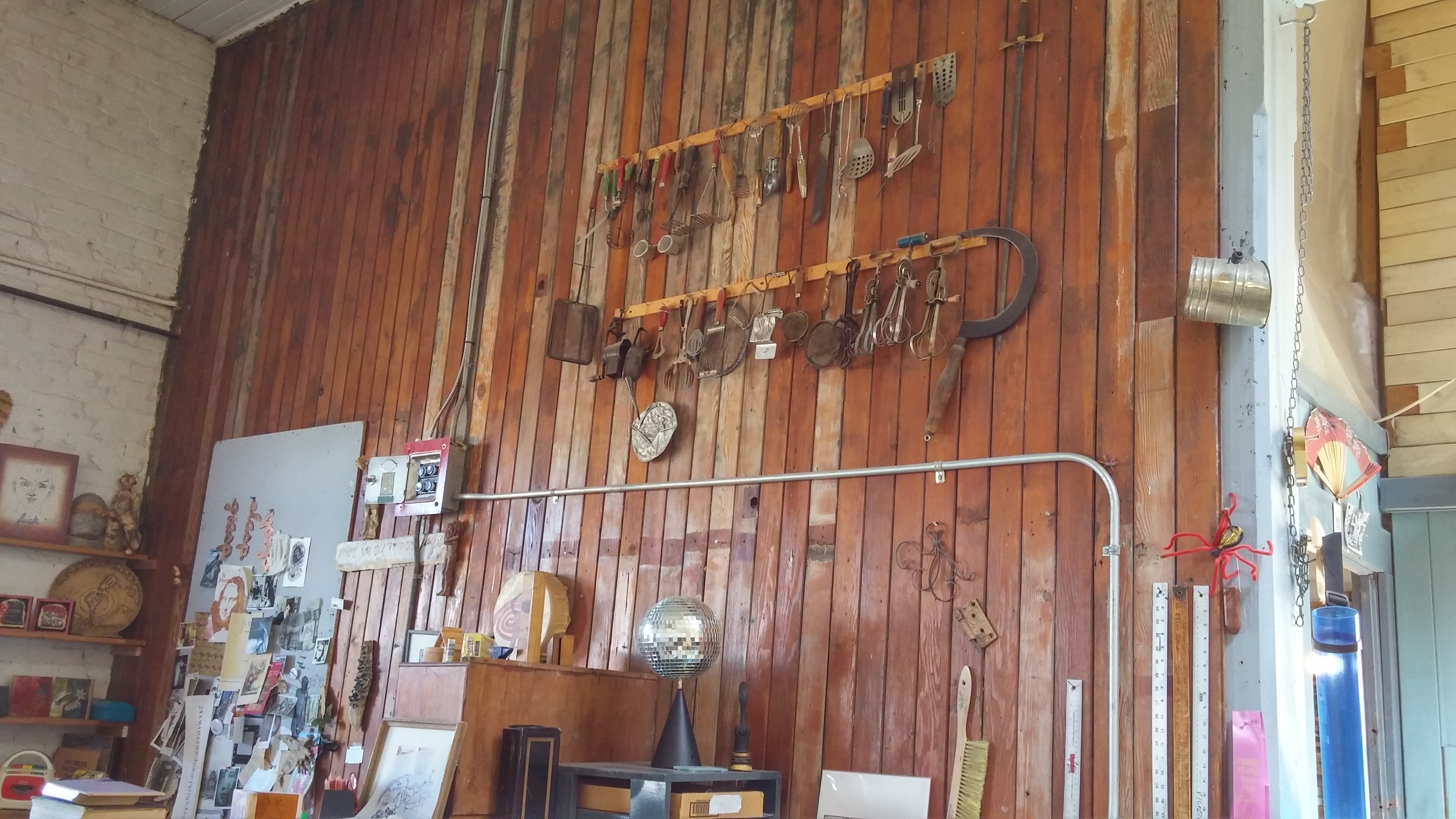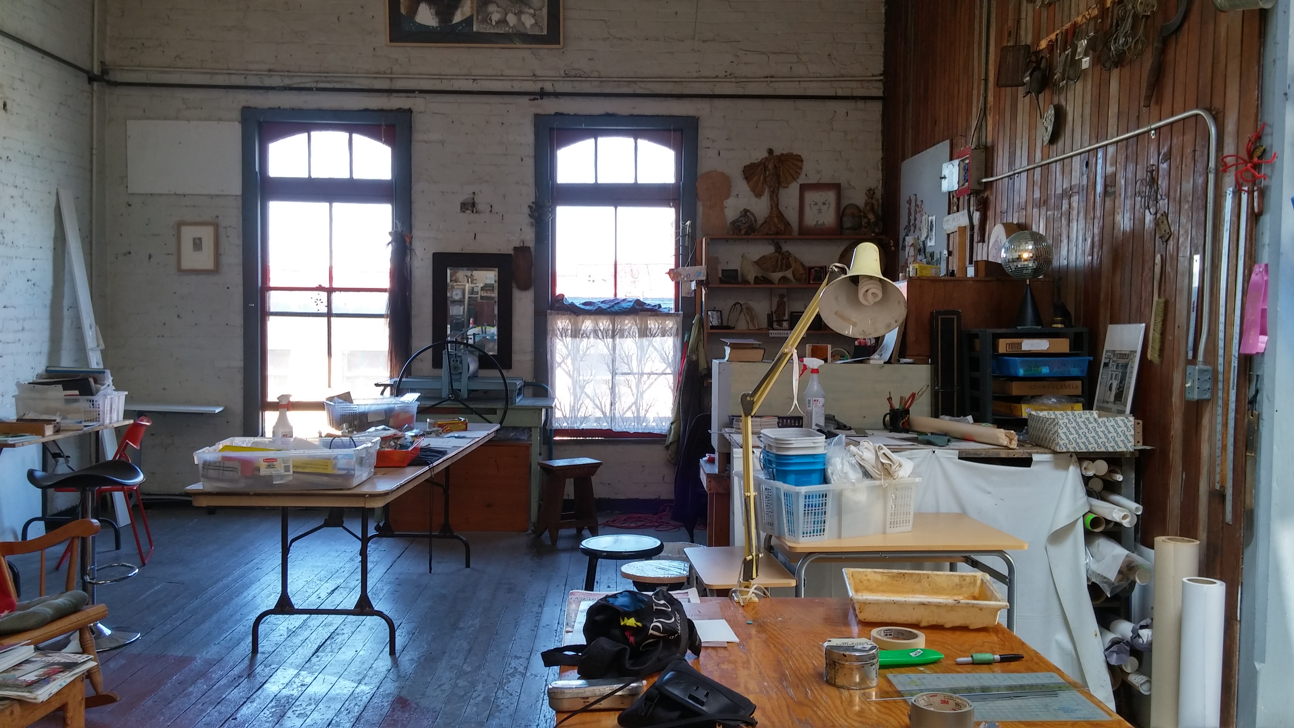 On June 25, 2016, Miyoko Caubet and I visited Victoria and Alain’s studio at 5491/2 Fisgard Ave. in Chinatown. We actually cruised Fantan Alley first because we missed it. We finally figured it out and worked our way up the steep old staircase and into the studio, which has several rooms and other areas that comprise the whole.